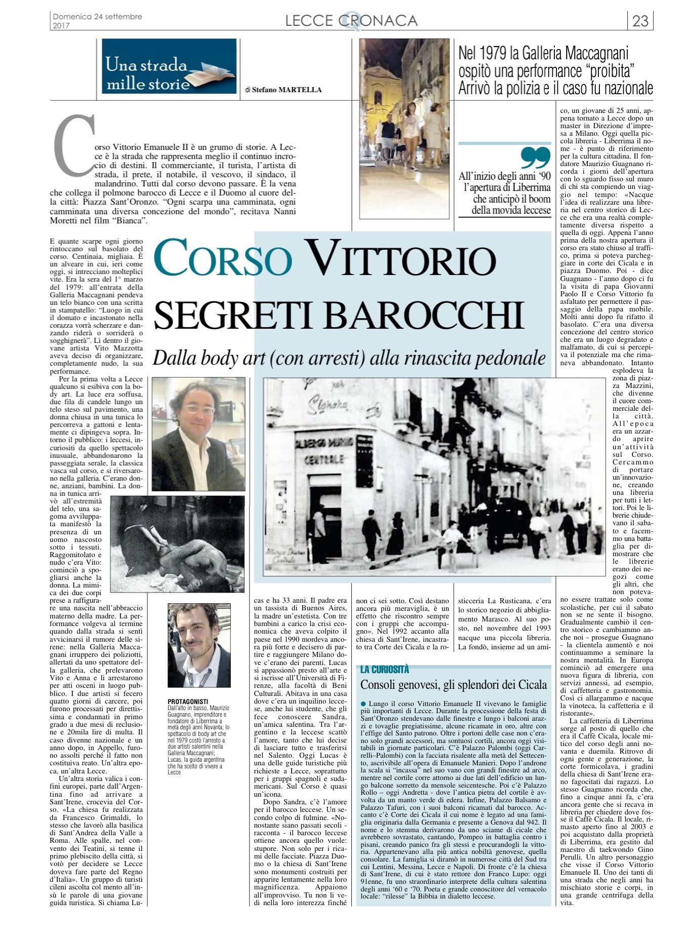 Storia e Futuro di Lecce. Scritto il 24 Settembre 2017. Pubblicato in Evidenza, Notizie, Recensioni. Oggi 24 settembre l’articolo del Quotidiano di Lecce su Corso Vittorio Emanuele. Quotidiano di Lecce24 settembre 2017 Continua a leggere