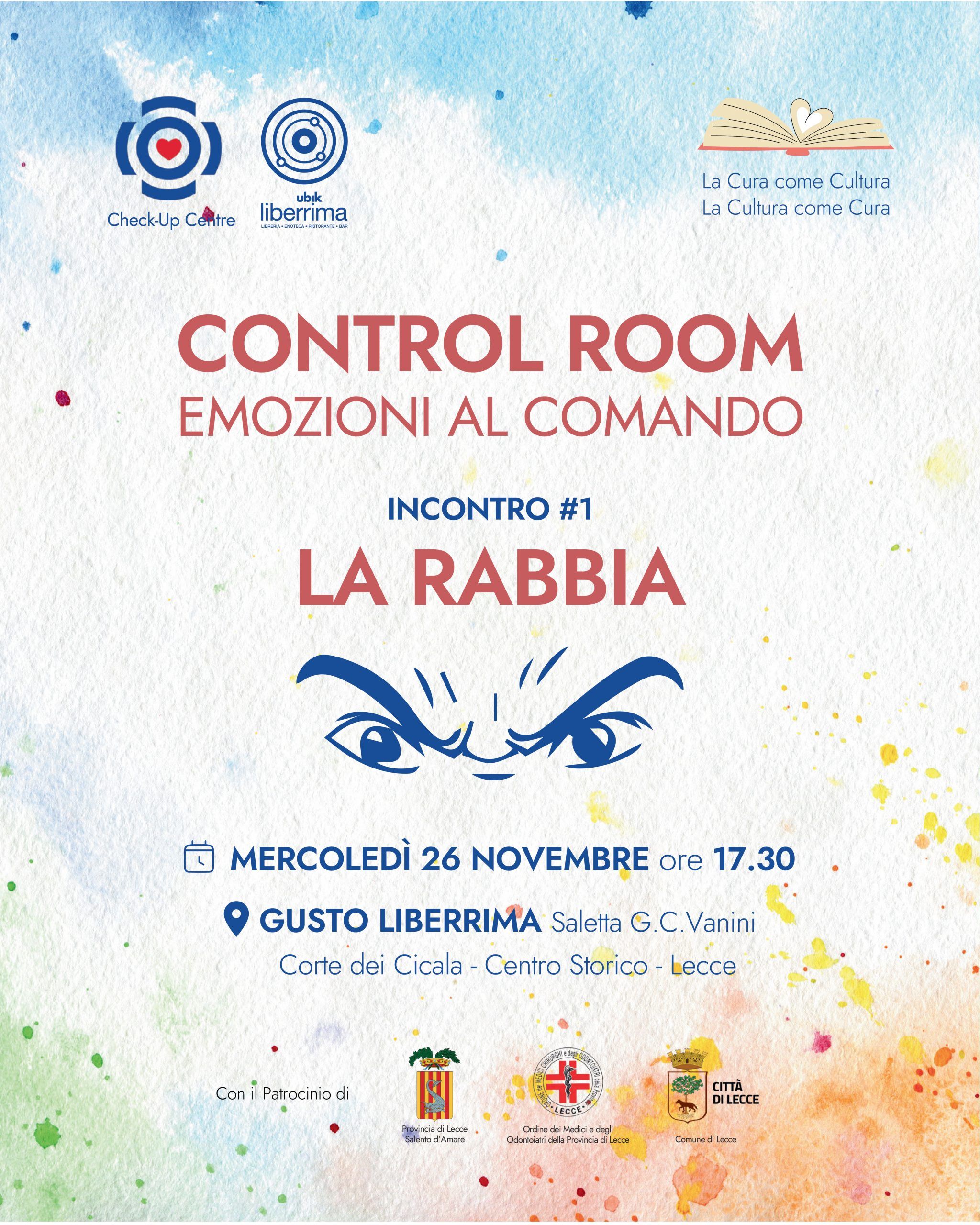 Il cuore dell’iniziativa è CONTROL ROOM – Emozioni al Comando, ciclo di incontri con letture, momenti esperienziali e dialogo con professionisti della salute e della cultura. L’obiettivo è favorire consapevolezza e offrire strumenti capaci di trasformare anche le emozioni più complesse in occasioni di crescita, reazione e riequilibrio personale.