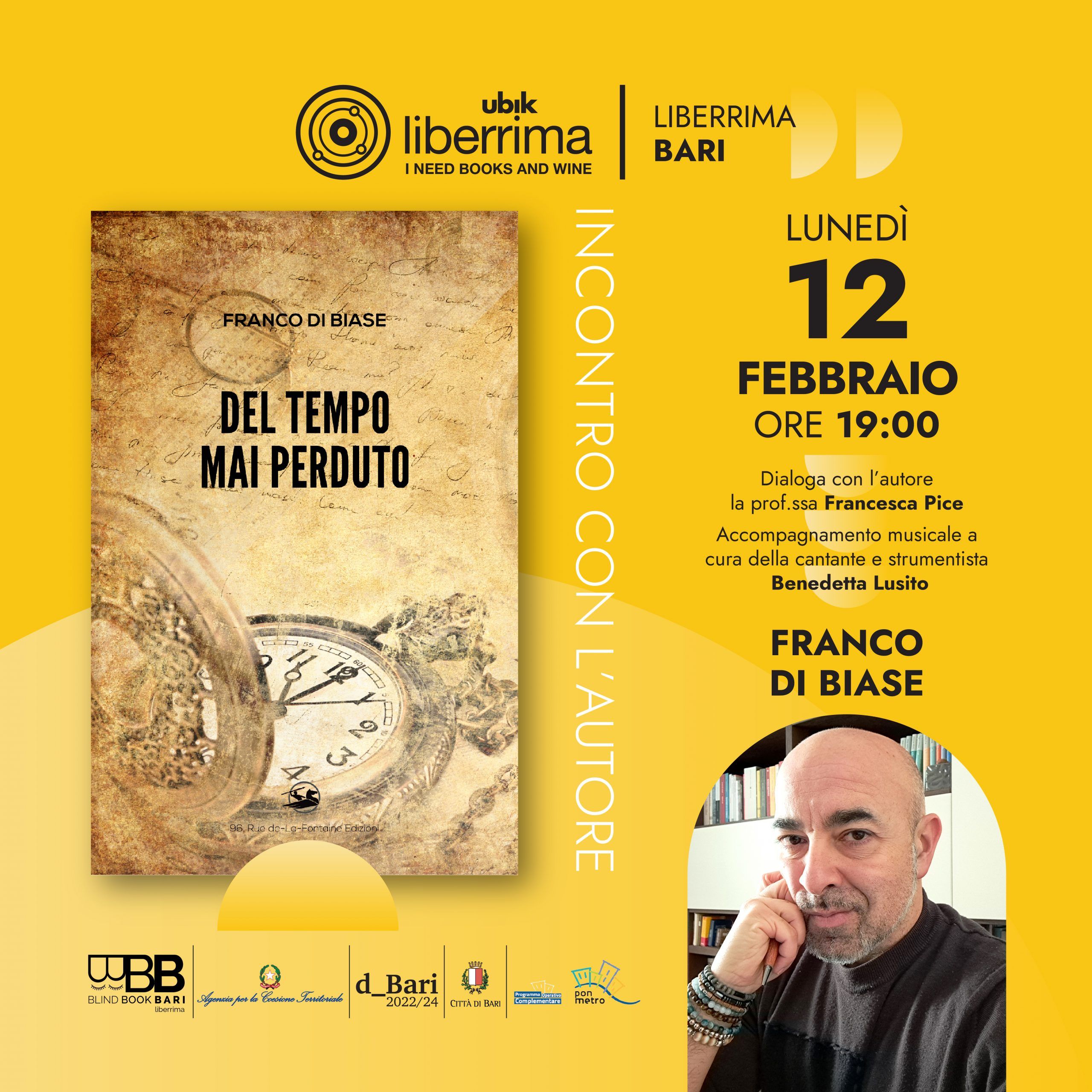 Lunedì 12 febbraio alle 19:00 da Liberrima Bari (Via Calefati, 12) Franco Di Biase ci parlerà del suo libro Del tempo mai perduto, 96 rue de-La-Fontaine Edizioni.