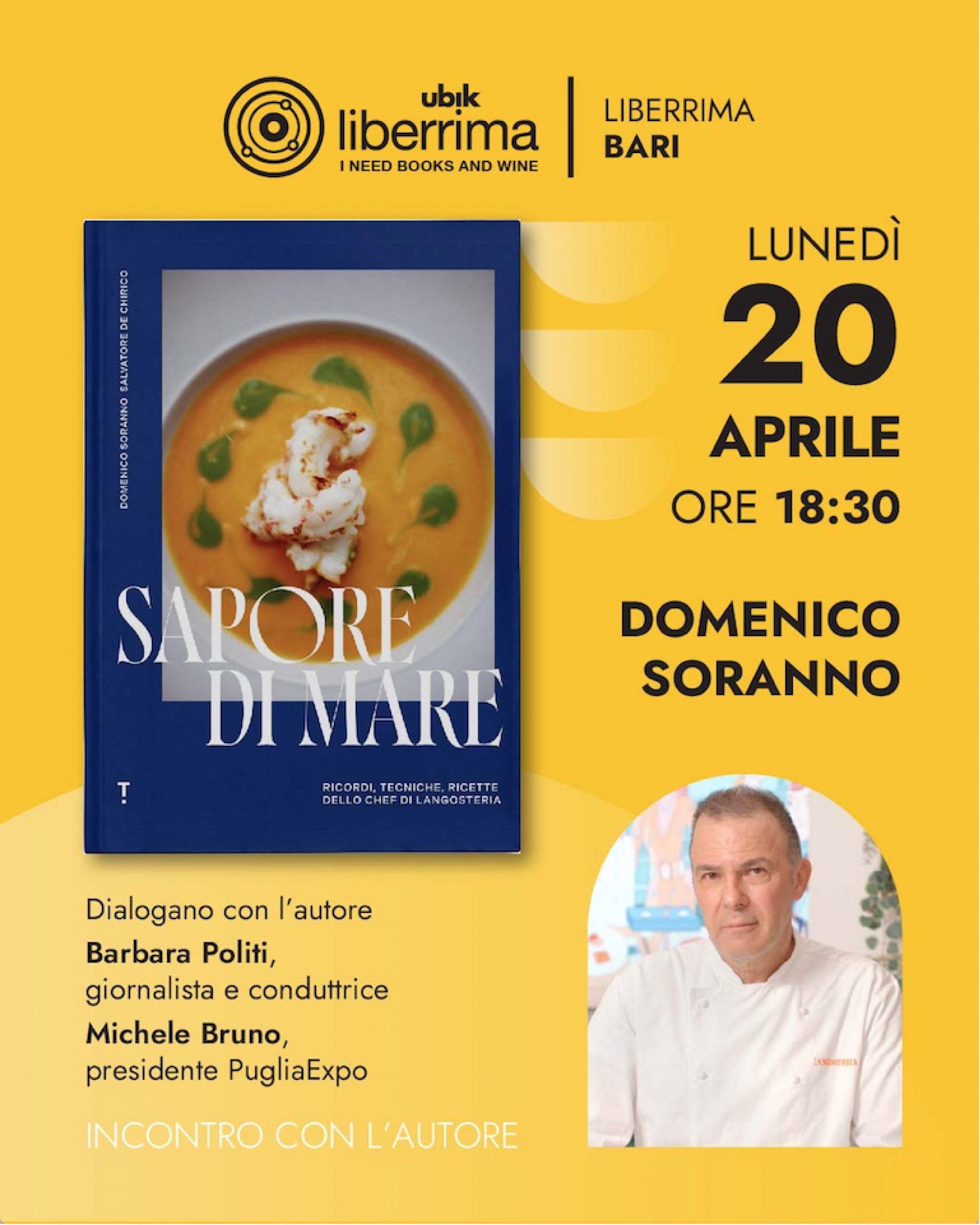 Lunedì 20 aprile alle 18:30, vi aspettiamo da Liberrima Bari con Domenico Soranno per parlare del suo libro Sapore di mare. Ricordi, tecniche ricette dallo chef di Langosteria, edito da Topic
